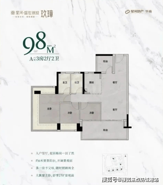 对于刚需家庭来说,可重点关注95㎡、98㎡、99㎡三房两卫户型,总价323万起,性价比突出,十分适合新婚家庭或三口之家。其中,99㎡户型设计尤为实用,部分可实现“3+1”空间布局,多出的一个空间可根据家庭需求改造为书房、儿童房或储物间,灵活性十足;同时,户型配备飘窗和充足的收纳设计,贴合日常居住需求,有效利用每一寸空间,避免浪费,让小面积也能拥有大格局。据了解,该户型三开间朝东,配备约3.7米宽、270°景观阳台,采光和视野都十分出色,居住体验极佳。