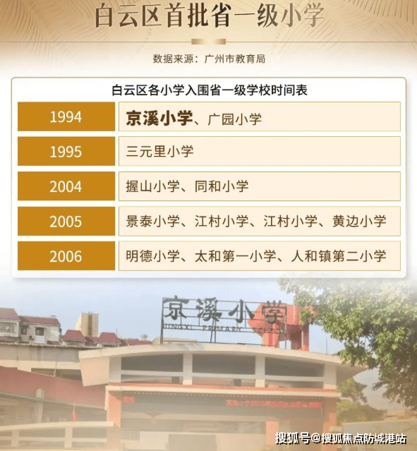 A:项目对口省一级京溪小学,周边配建学校纳入培英教育集团,旧改规划新增 36 班小学,全龄教育资源丰富,具体入学政策以当年教育局公示为准。