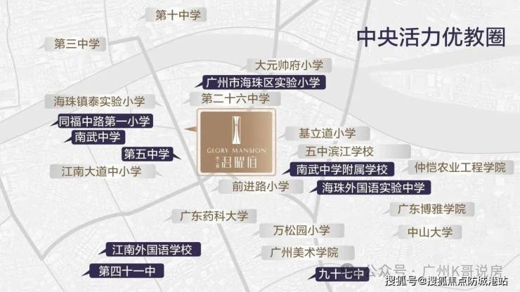 在初中阶段,君曜府所属的小升初派位组别也颇具看点。海实的小升初派位主要在第四组,这个组别内不乏一些老牌名校,包括广州市第五中学、南武中学、广州市第六中学等。此外,还新增了广东实验中学琶洲学校这样的热门新贵。虽然派位存在一定的随机性,但第四组的整体教育资源在海珠区属于中上水平。特别是南武中学,作为海珠区的龙头中学之一,历年都有不少海实的毕业生通过派位进入该校就读。五中和六中也是广州市知名的完全中学,教学实力雄厚。