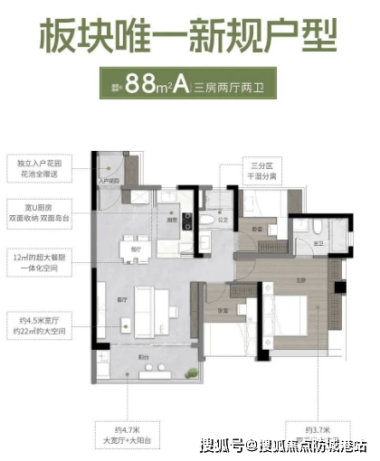 户型设计上,万科·檐屿城推出了多种面积段的产品,从77平方米到135平方米不等,全部采用创意三房至四房的设计,满足不同家庭的需求。其中,建面约88平方米的A户型特别配备了4.7米大阳台,提供了宽敞的户外活动空间。全屋采用高端材料和定制化设计,如柔美的东方既白岩板、珍贵的雀眼木木饰面等,提升了居住的舒适度和美感。