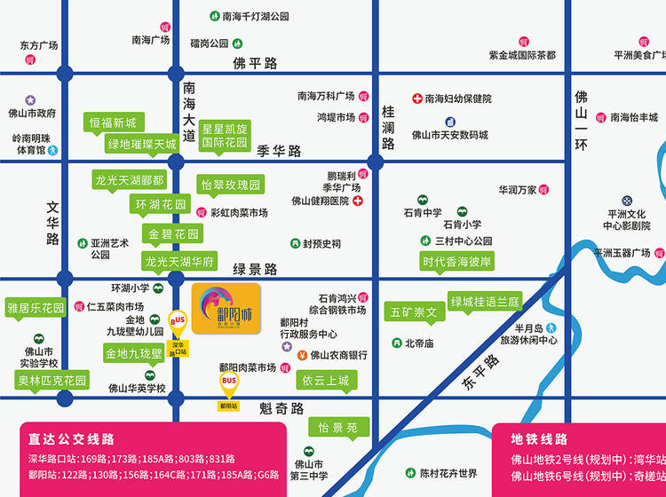 地铁:佛山地铁2号线(规划中)湾华站/佛山地铁6号线(规划中)奇槎站直达项目;