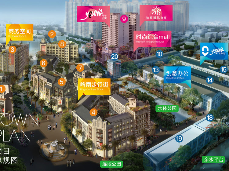 鄱阳城·众创小镇位于广东省佛山市禅城区绿景东路与南海大道交汇处(亚艺湖区域),属佛山禅桂交界处、该区域为佛山传统富人聚集区,消费潜力巨大。项目总投资超3.5亿元,占地面积110余亩,建筑面积约12万㎡,分为创意办公区以及岭南风格商业区两大板块,项目整体车位配套约2000个。