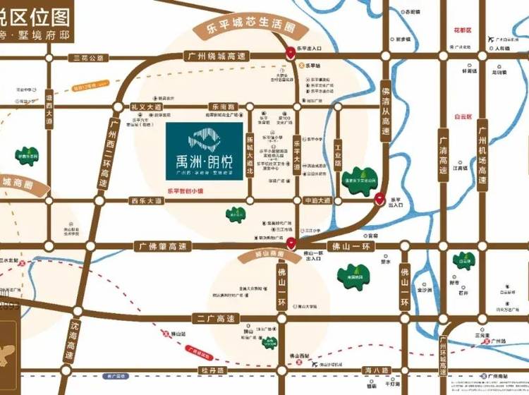 交通:项目位于乐平新城位置,靠近乐平大道、科勒大道,可接驳广佛肇轻轨、贵广高铁、南广高铁、佛山地铁4号线(在建)、12号线(规划)、三水有轨电车(规划)全面覆盖;广佛肇高速(在建)、广州绕城高速、佛清从高速、广清高速四大高速线