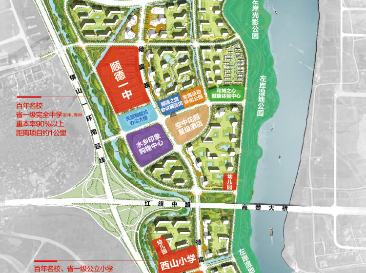 项目紧邻具备名校DNA的百年学府西山小学高新区学校及顺德一中南校区,并且周边同时配置幼儿园,覆盖15年全龄教育。