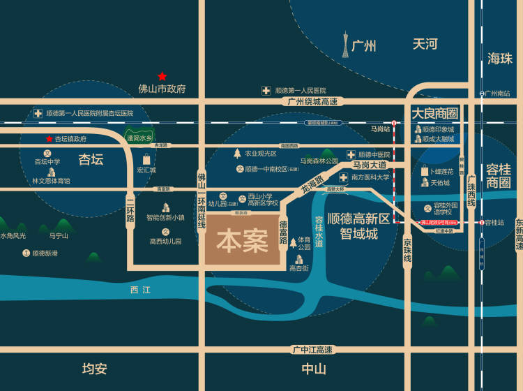医院:邻近项目近有南方医科大学顺德医院附属杏坛医院、顺德妇幼医院,顺德第一人民医院,广东同江医院等,车程只需20分钟,为您跟家人健康保驾护航