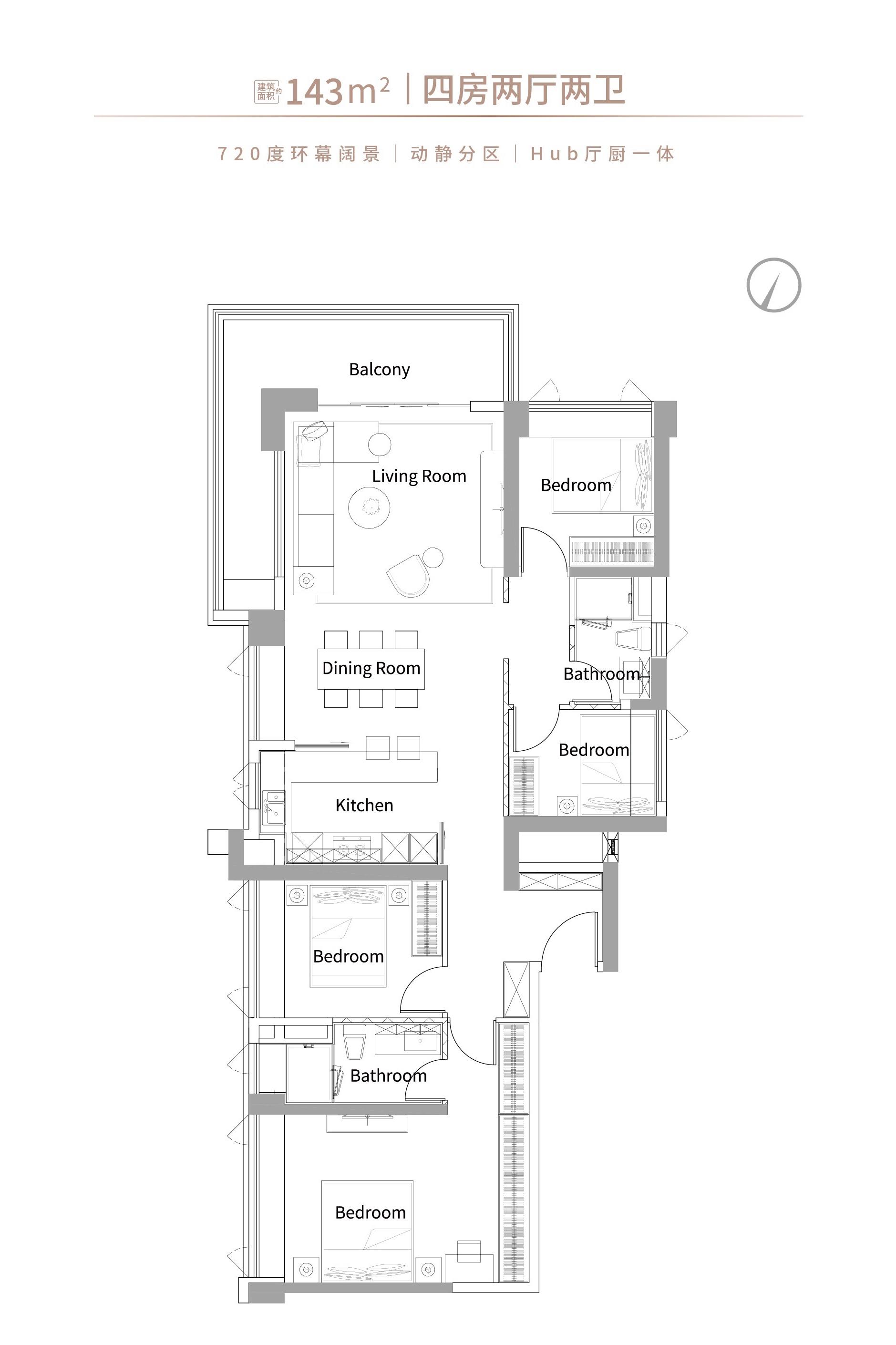 4室2厅2卫-建面约143平四房两厅两卫户型