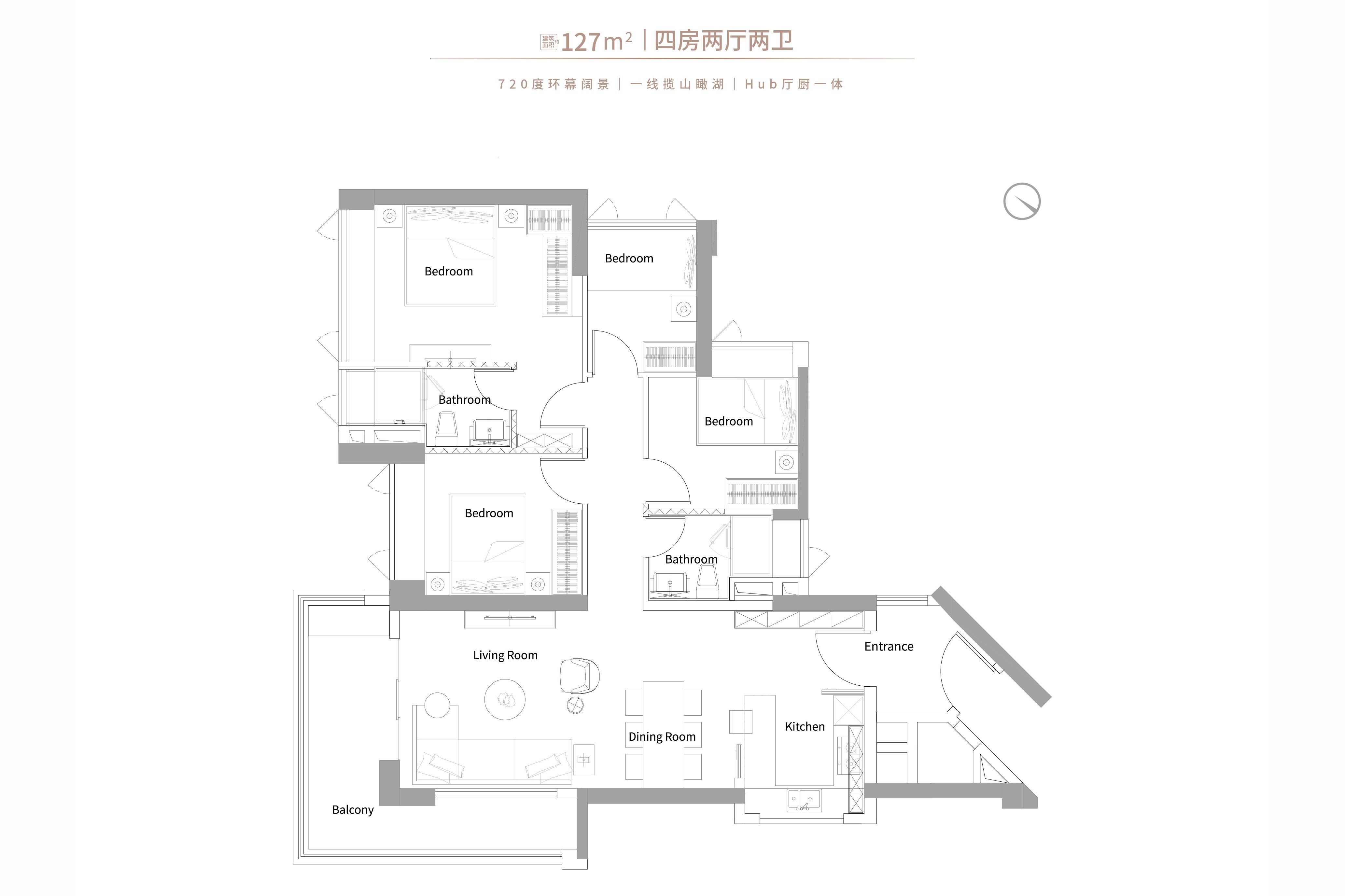 4室2厅2卫-建面约127平四房两厅两卫户型