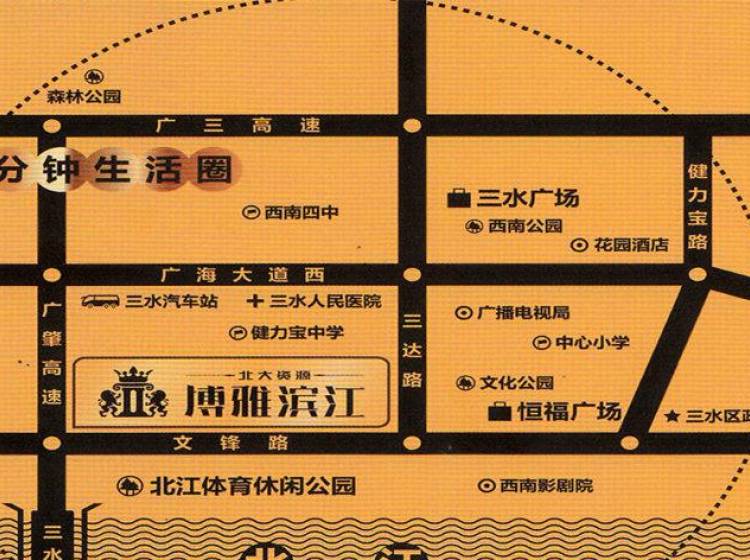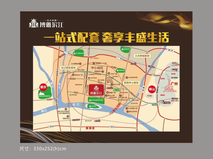 博雅滨江位于西南城区中心位置的文锋路侧,通过周边三纵两横的发达路网联通西南、三水、广佛各地。其中三纵是口岸大道、三达路和项目西侧规划的一条路,两横就是项目南面文锋路和北面的锦江路。其中沿着三达路转入广三高速,接驳沈海高速广州支线,25分钟即可速达广州,双城繁华生活,咫尺之间。除此之外,项目周边还有三水南站和三水北站,搭乘轻轨和高铁可快速通达港珠澳大湾区各城市。更重要的是佛山地铁4号线在项目约1公里的地方便设有地铁站,开通后将途经狮山、张槎、季华路等,未来佛山地铁4号线还将规划二期工程,延伸至广州番禺,形成一条广佛跨市轨道交通,三期工程或将延伸至肇庆新区,形成一条广佛肇的跨市交通