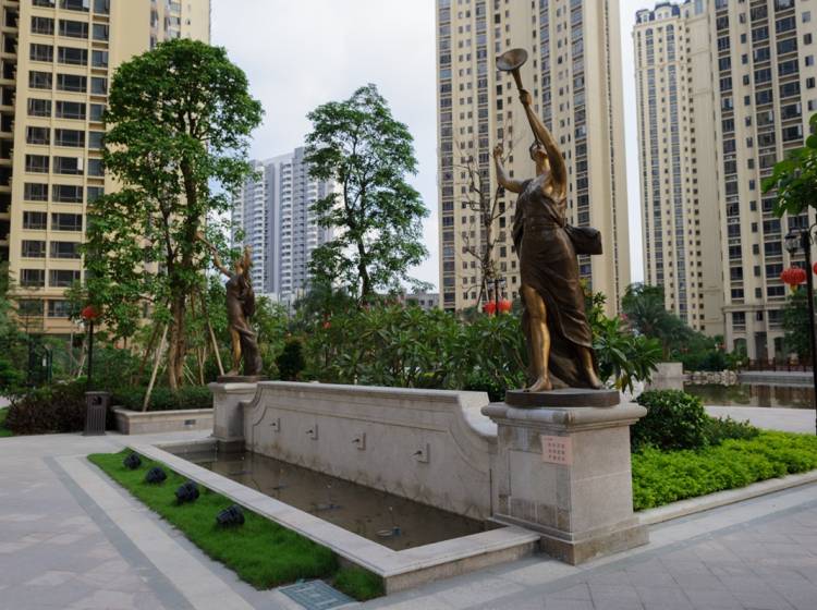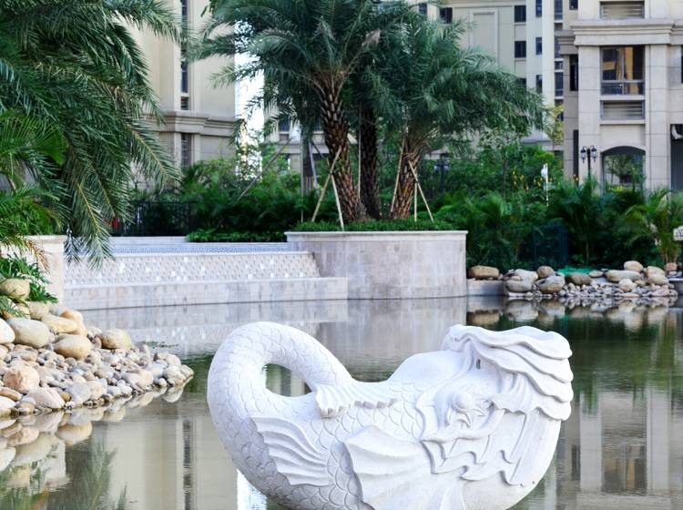 约8000m²超大规模,串联新文化中心、雕塑艺术长廊、艺术文化商业街等,使小区园林景观与北江体育休闲公园无缝连接,通过举办不同主题的文化活动,让北大文脉与精神献礼三水。