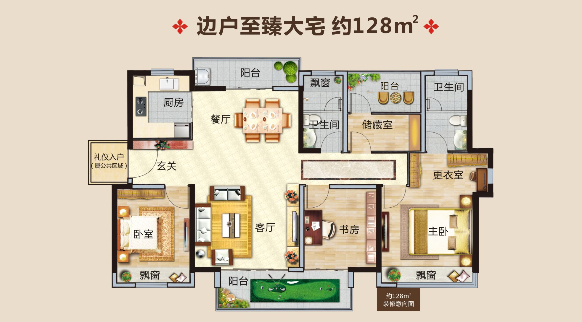 ④户型升级,四期户型设计秉承着注重客户使用体验,我们四期产品的户型拥有四大亮点,包括礼仪入户玄关(在门口位置预留了对联和门馆的位置)、超级阳台(最长景观阳台长度近6米)、可拓展空间集中(空中花园可改为卧室/书房)、等宽餐客厅设计(室内空间通透明亮,紧密的餐厨设计)。