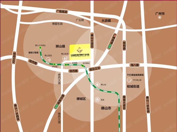 华南医疗器材城坐落佛山高新技术产业开发区核心园区,依托“千亿产业经济重镇”——狮山镇,紧邻禅桂中心区和广佛结合部的大沥镇,城市主干道、城际高速、轨道交通等多维立体交通配套完善,15分钟畅达禅桂中心、30分钟直达广州中心。