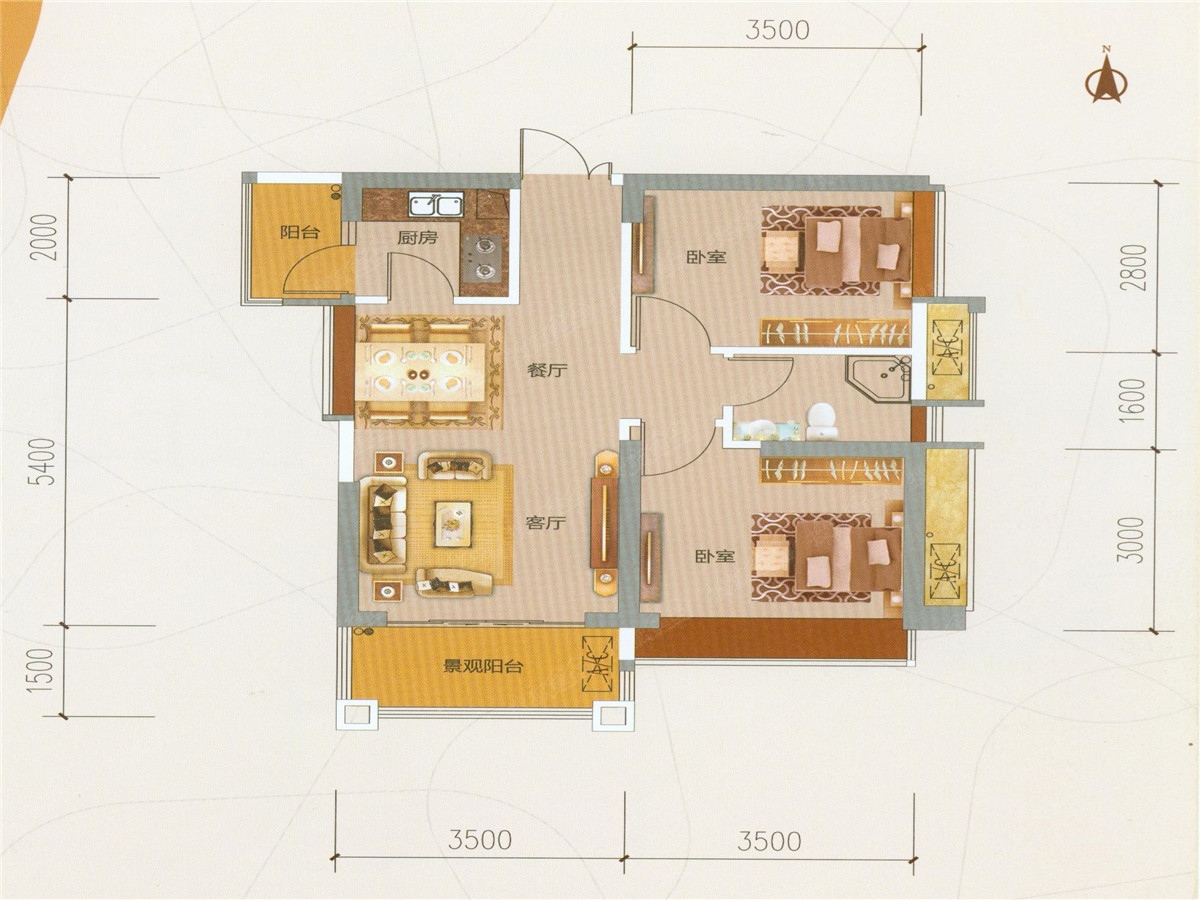 2室2厅1卫-7座03户型