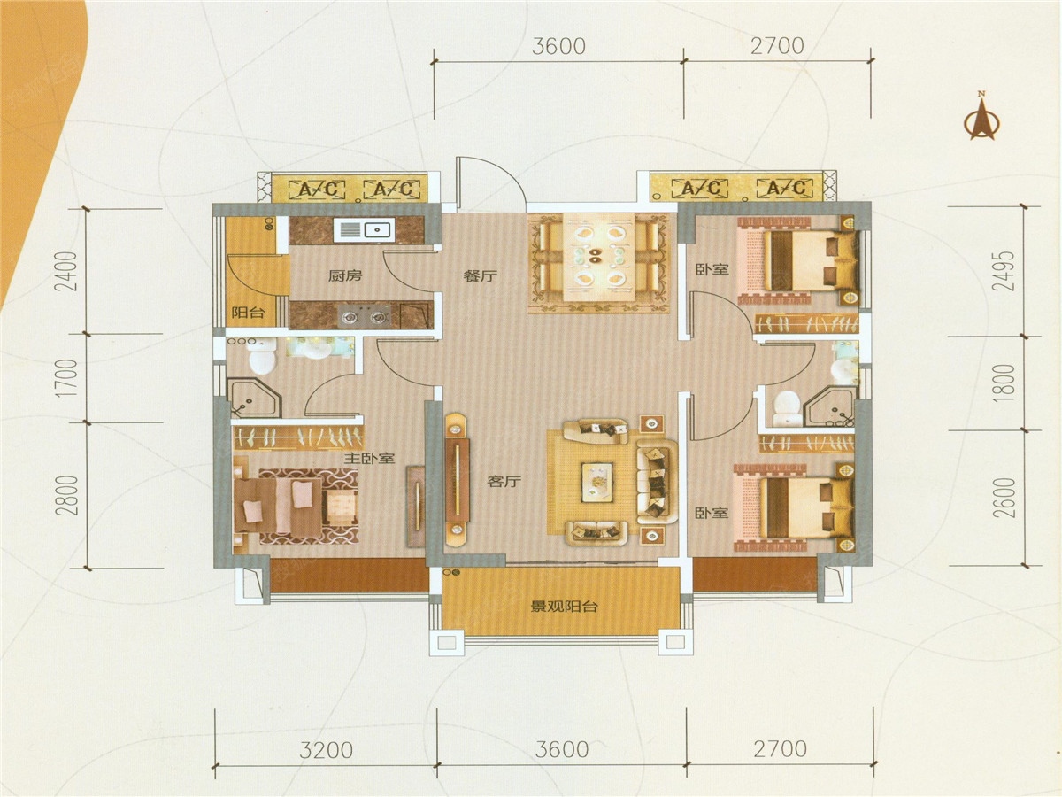 3室3厅2卫-11座01户型