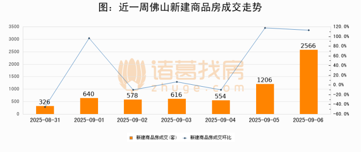 根据佛山市住房保障和房产信息网数据显示,2025年09月06日佛山新建商品房成交2566套,较昨日增加1360套,环比上涨112.8%。近一周佛山新建商品房日均成交927套。09月06日单日成交2566套,高于近一周平均水平176.8%。