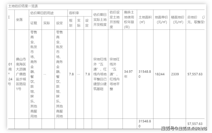 土地估价结果显示,地块评估价约5.76亿(估价期为2023年6月25日的市场价值)。