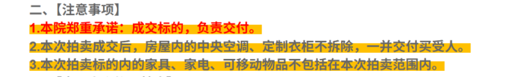 需要注意的是,公告显示,拍卖标的内的家具、家电、可移动物品不包括在本次拍卖范围内。