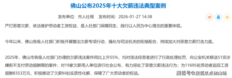 到了今年年初,佛山公布2025年十大欠薪违法典型案例,其中包括南海泰成逸园综合医院有限公司恶意欠薪案。