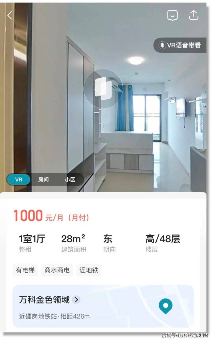 位于万科金色领域 ,建面28㎡的一房一厅,每月租金为1000元。
