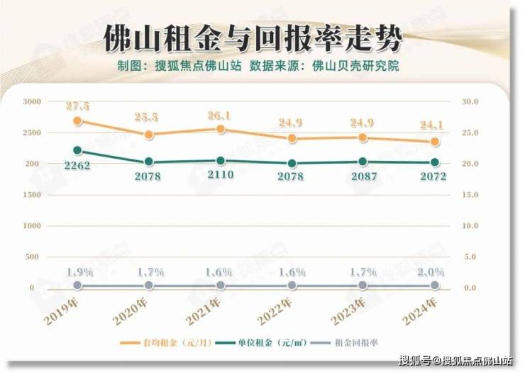1.2024年,佛山全市套均租金 呈下降趋势,但租金回报率 却上涨 至2%;