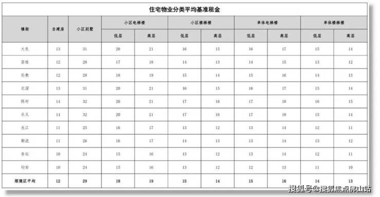 最低的是杏坛和均安 ,自建房10元/㎡·月,小区别墅24元/㎡·月。