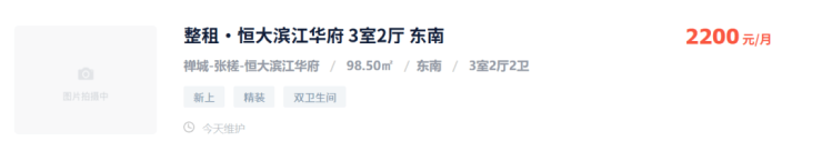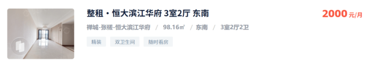 就比如,恒大滨江华府 今天刚上架的三室两厅,租金为2200元/月 ,无家具,且在低楼层 。