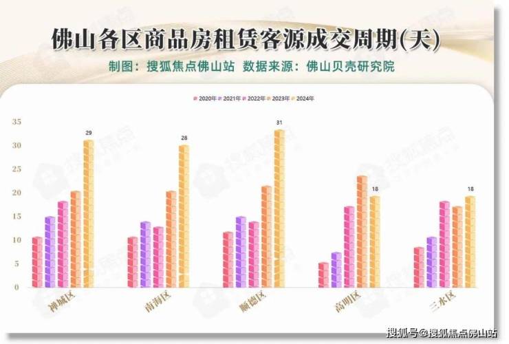 另外,五区中,南海租赁房源的成交周期最短 ,高明房源的成交周期有明显的延长。