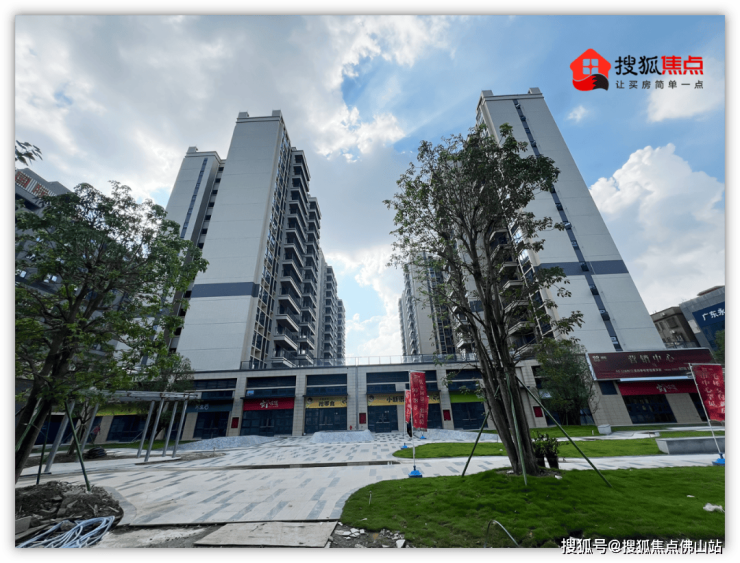 小区周边及内部的绿化正在逐步完善,楼栋外立面均已完工,项目首层为商铺。