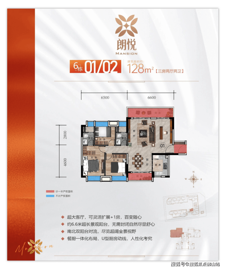 另一个亮点则是约6.6米的景观阳台,连接客厅,空间更加通透。