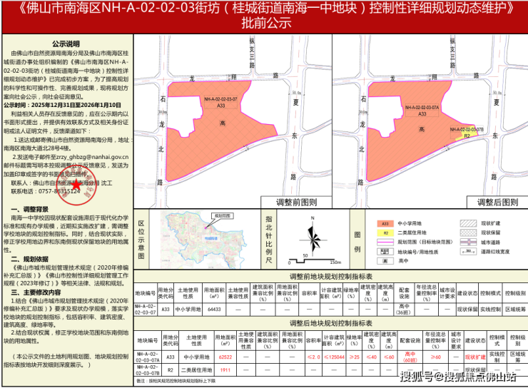 近日,佛山市自然资源局南海分局发布《佛山市南海区NH-A-02-02-03街坊(桂城街道南海一中地块)控制性详细规划动态维护》批前公示。