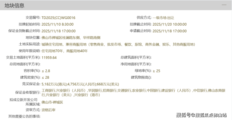 禅城桂澜路东侧、华祥路南侧地块再度挂牌,起拍总价23776万元,于11月20日开拍。