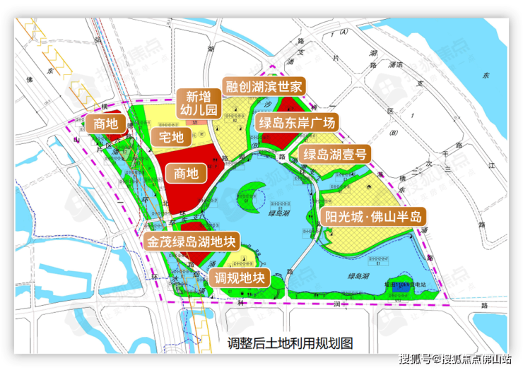 其中绿岛湖科润路以北地块的商业文化用地将调规为住宅用地兼文化用地。