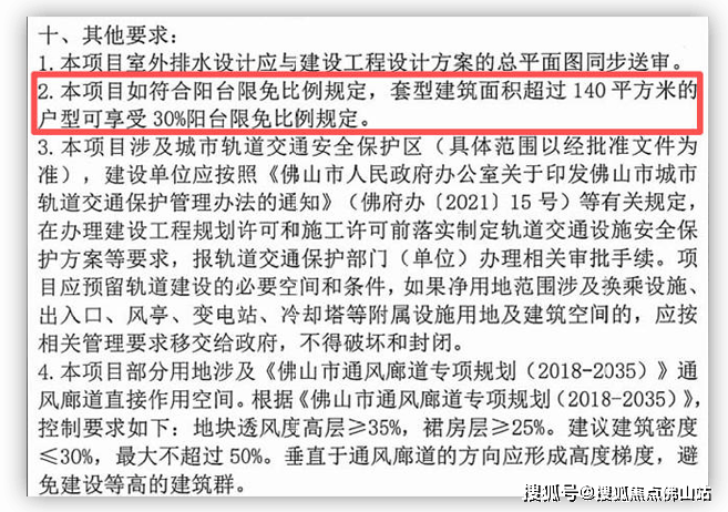 文件中提及,该项目符合阳台限免比例条件,套型建筑面积超过140㎡的户型可享受30%阳台限免比例政策。