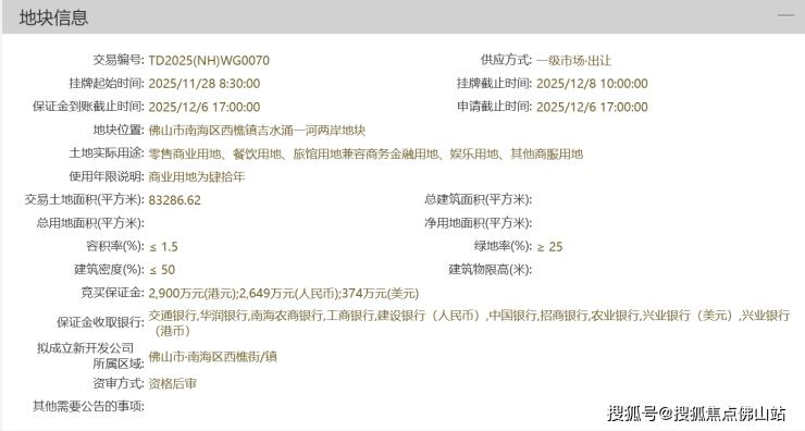 12月8日,广东岭南幻境文化旅游开发有限责任公司以13243万元竞得佛山市南海区西樵镇吉水涌一河两岸地块。