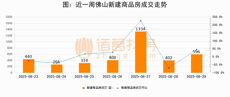 根据佛山市住房保障和房产信息网数据显示,2025年08月29日佛山新建商品房成交596套,较昨日增加194套,环比上涨48.3%。近一周佛山新建商品房日均成交538套。08月29日单日成交596套,高于近一周平均水平10.8%。