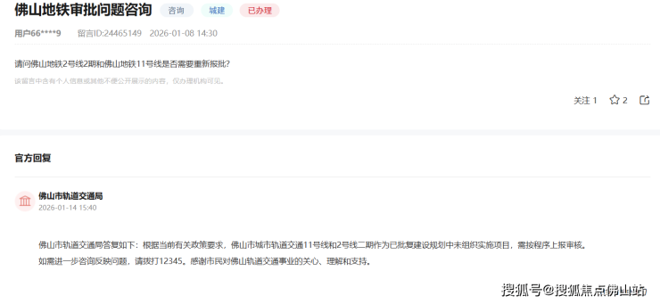近日,有网友在领导留言板上咨询关于佛山地铁审批问题。