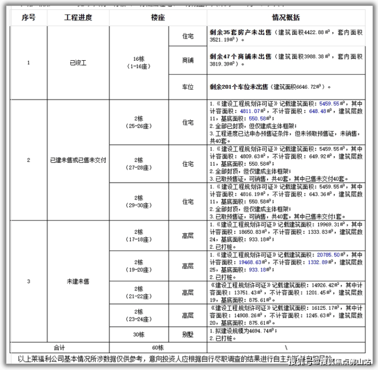 8栋高层住宅、30栋别墅未建未售。