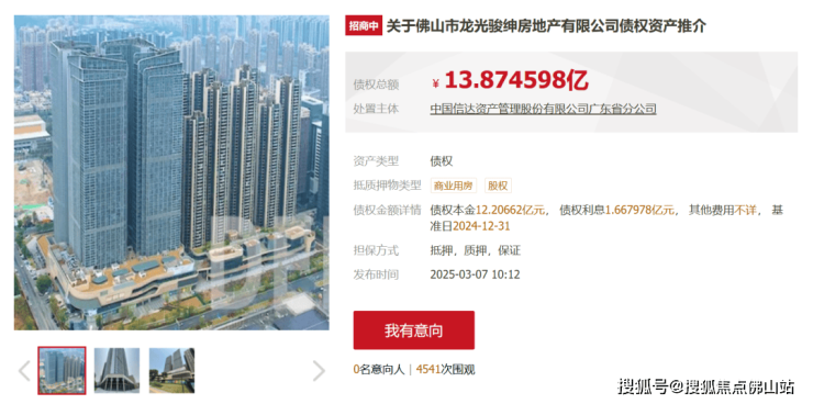 随后佛山子公司也陷入危机,债权资产于去年上架阿里拍卖平台,但无人接手。