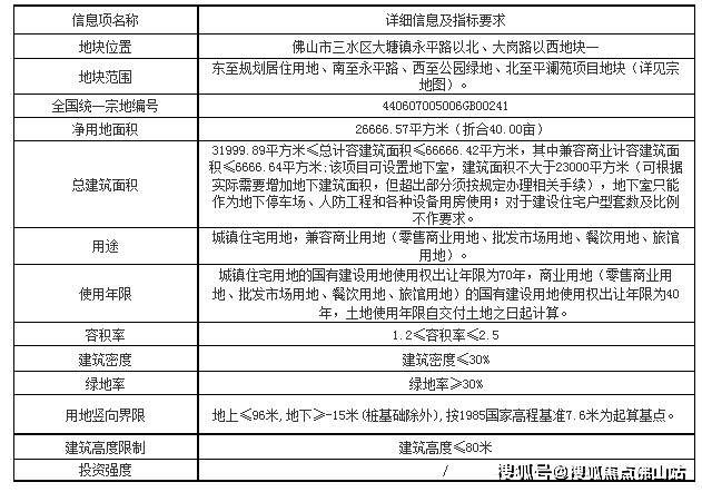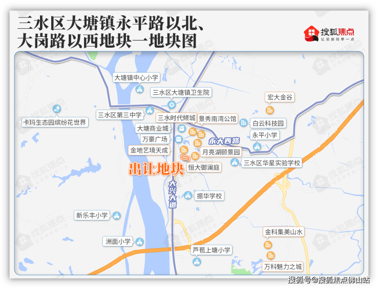 地块具体位于三水区大塘镇永平路以北、大岗路以西地块一,为住宅用地兼容商业用地,占地面积约2.7万㎡,折合40亩,起拍总价5552万元,初始楼面价832元/㎡。