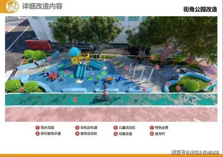 三是加装、加建相关的配套设施,如设置停车位、充电桩等,以及新建文化体育场所和公厕等。