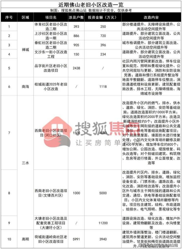 另外,三水西南老旧小区改造项目涉及河口片区和文锋西片区,投资金额共约9000万。