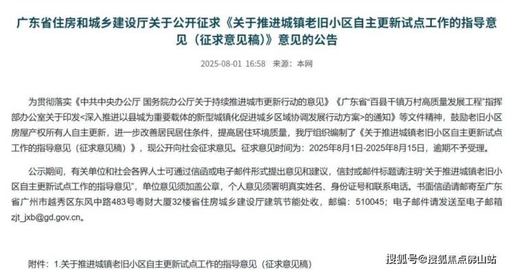 此前,广东省发布《关于推进城镇老旧小区自主更新试点工作的指导意见(征求意见稿)》。