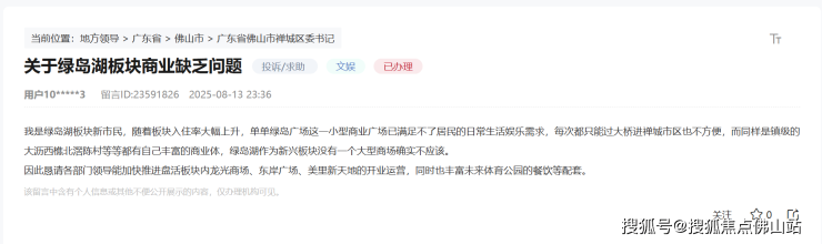 近日,有街坊在领导留言板咨询关于绿岛湖板块商业缺乏问题,表示:“随着板块入住率大幅上升,单单绿岛广场这一小型商业广场已满足不了居民的日常生活娱乐需求。”