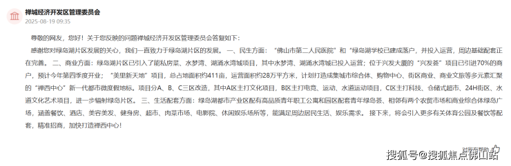 对此,禅城经济开发区管理委员会作出回应: