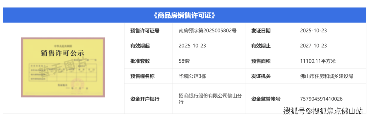 佛山房产信息网显示,招商华玺二期3座于10月23日取证,备案均价约5.8万元/㎡,对比2座的备案价,上调了9%。