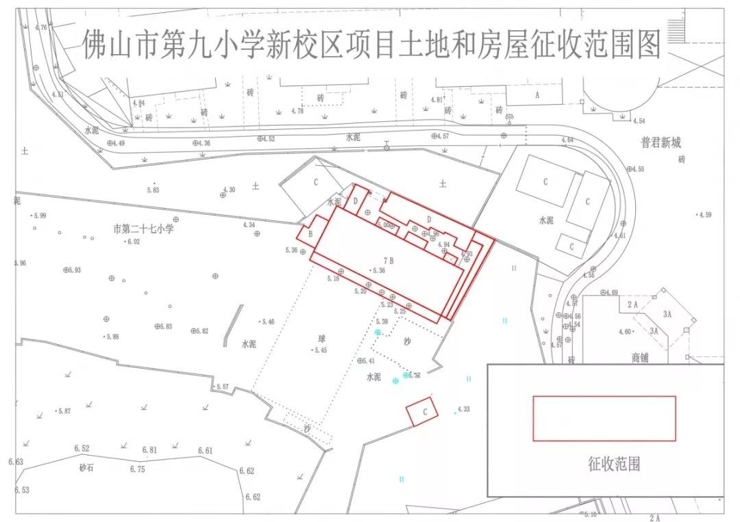 ▲佛山市第九小学新校区项目土地和房屋征收范围示意图