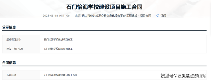 8月18日,广东省公共资源交易中心发布石门怡海学校建设项目施工合同。