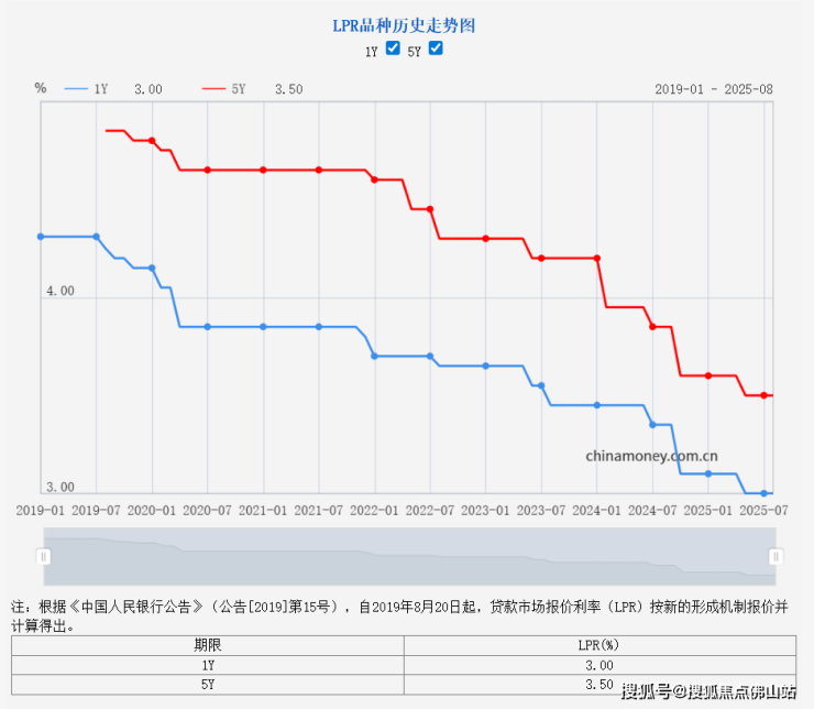 中国人民银行授权全国银行间同业拆借中心公布,2025年8月20日贷款市场报价利率(LPR)为:1年期LPR为3.0%,5年期以上LPR为3.5%。以上LPR在下一次发布LPR之前有效。