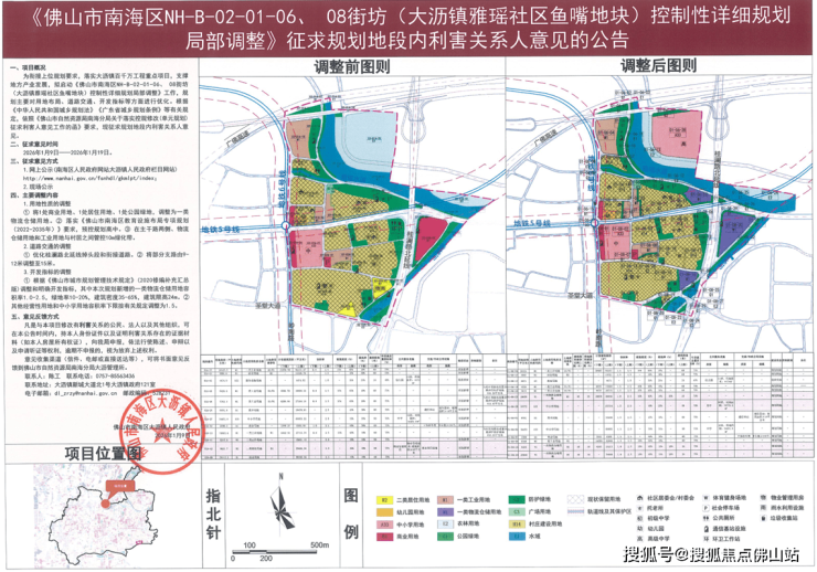 近日,佛山市南海区大沥镇人民政府发布《佛山市南海区NH-B-02-01-06、 08街坊(大沥镇雅瑶社区鱼嘴地块)控制性详细规划局部调整》征求规划地段内利害关系人意见的公告。