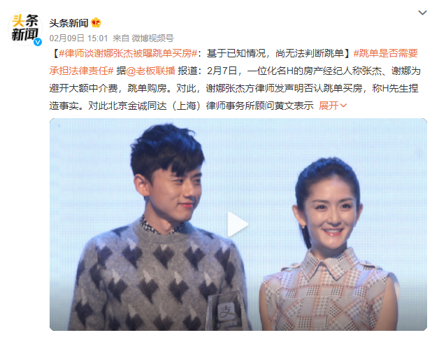 但是,就在前两日(2月7日),一则“张杰谢娜夫妇买房跳单”的词条竟冲上热搜榜。