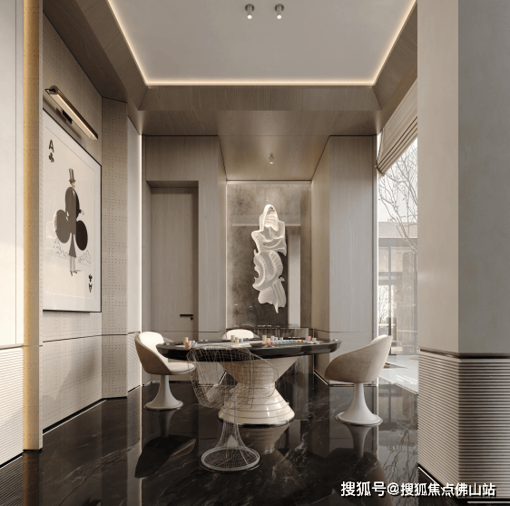 最独特的是项目打造品茗室,以岭南“水岸茶亭”为灵感,将传统“廊下品茶”的社交方式引入当代大宅。